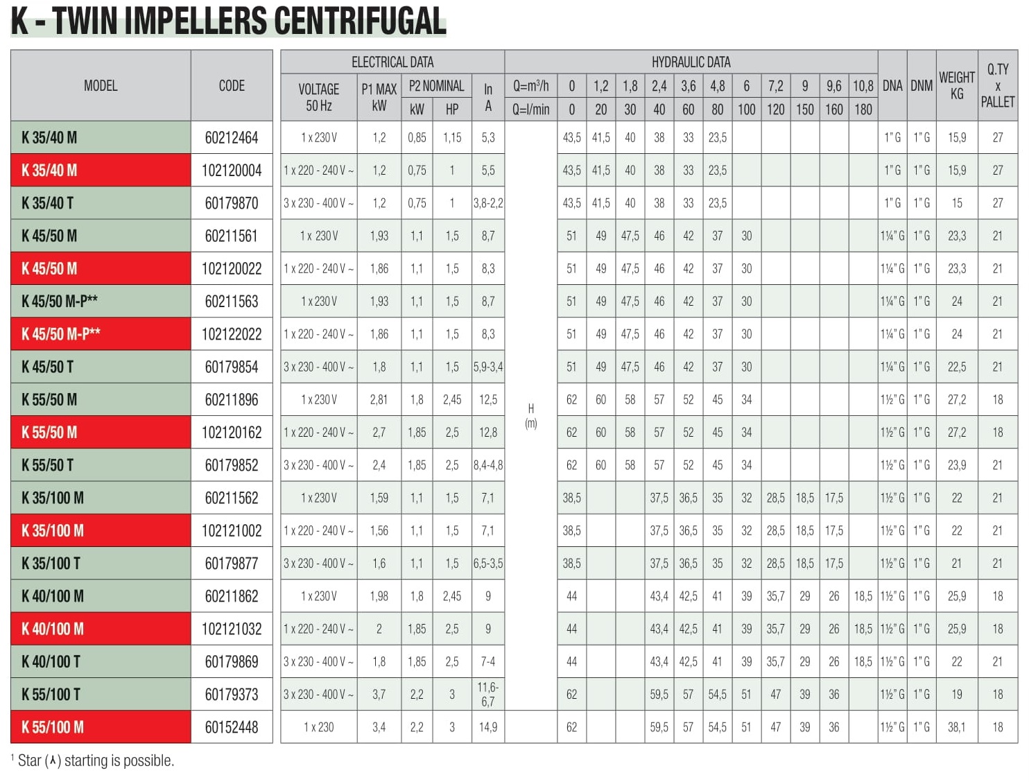 DAB Αντλία Νερού Φυγοκεντρική Διβάθμια DAB K 45/50M - 1.5Hp/230V