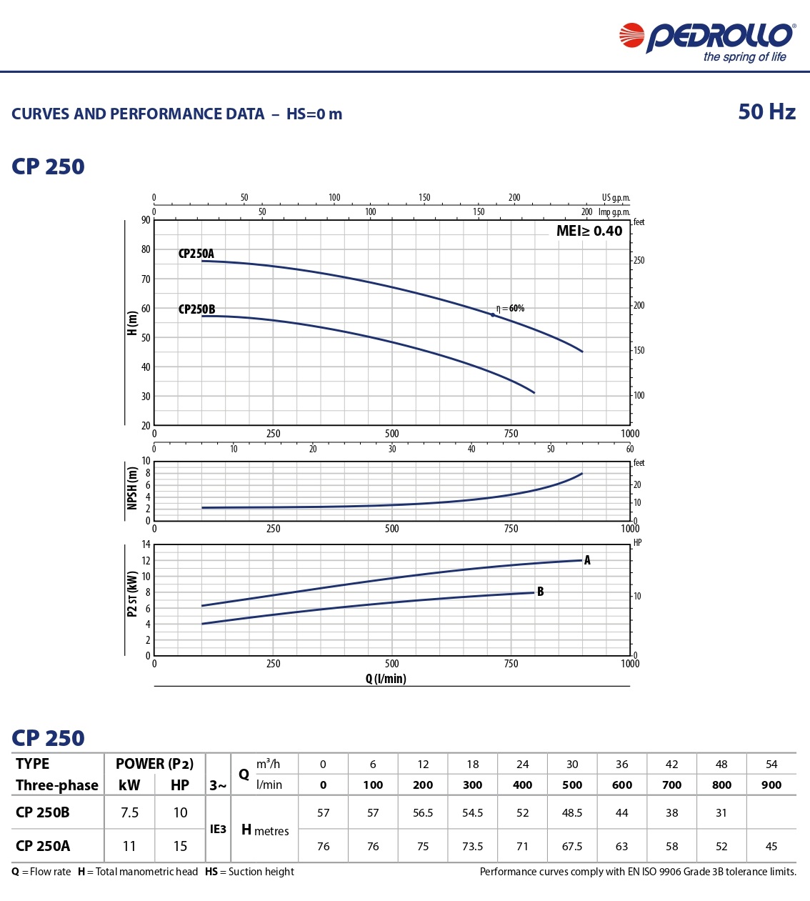 PEDROLLO Αντλία Νερού Φυγοκεντρική PEDROLLO CP 250B - 10Hp/400V