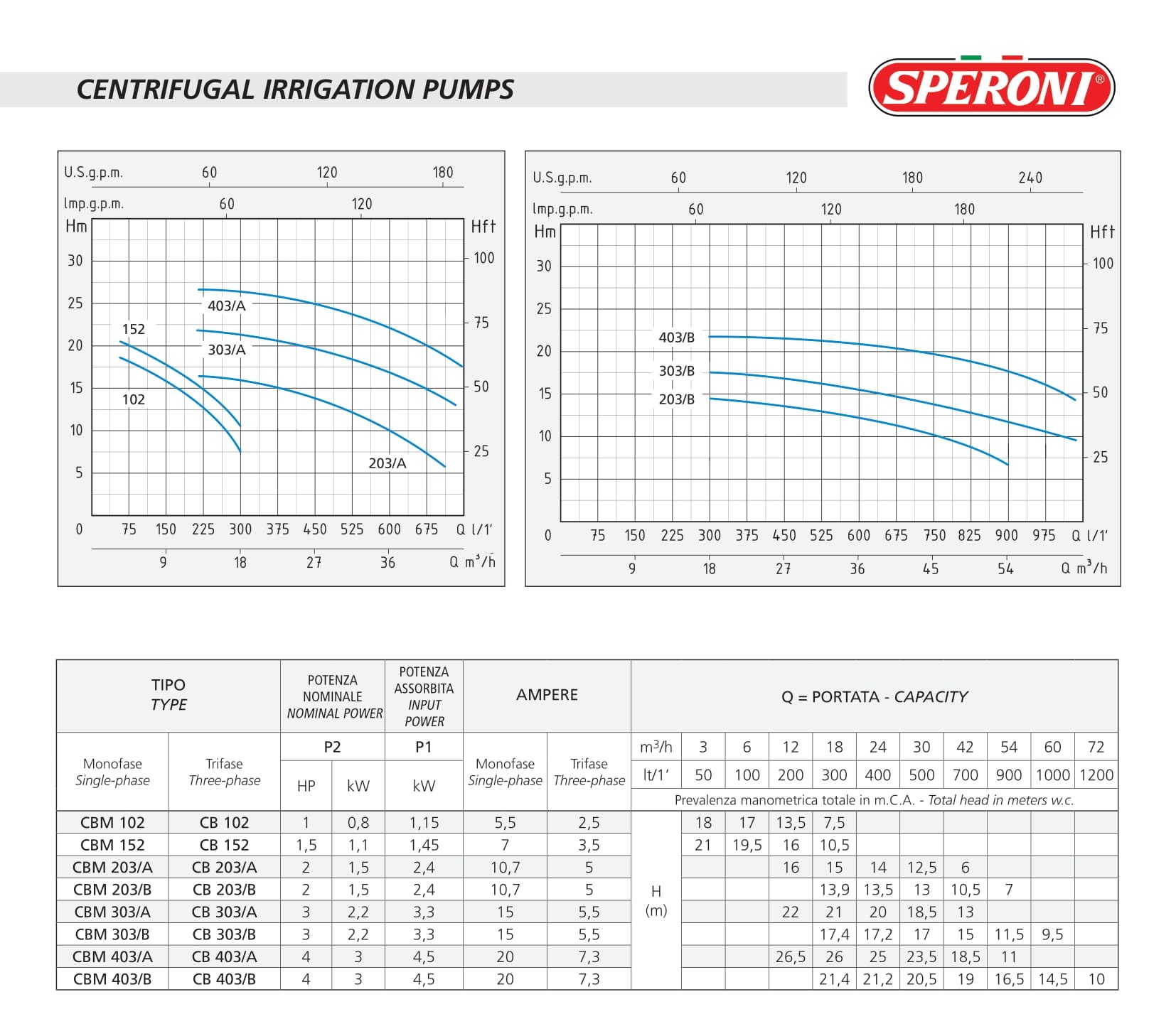 SPERONI Αντλία Νερού Φυγοκεντρική SPERONI CBM 203/A - 2Hp/230V