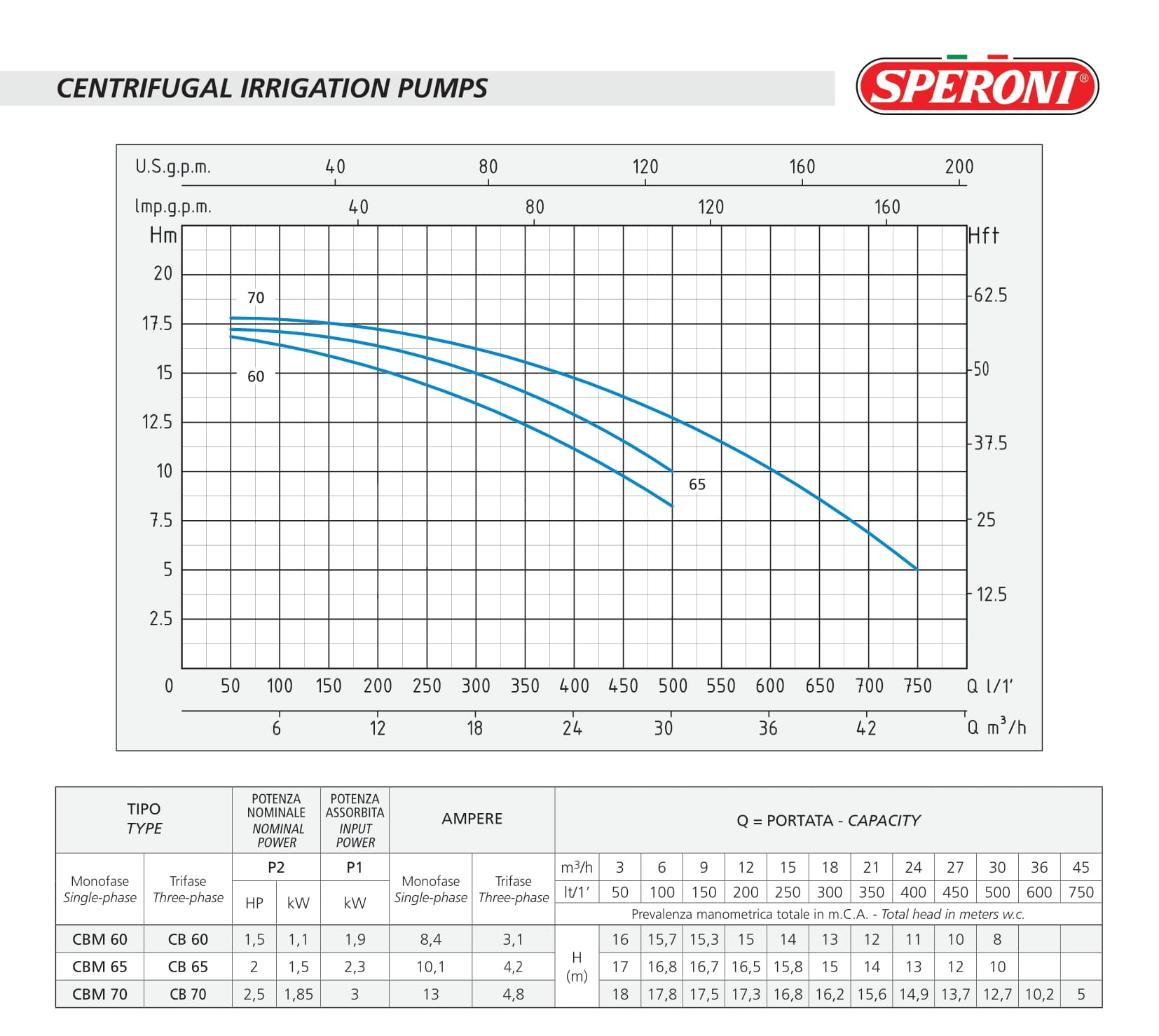 SPERONI Αντλία Νερού Φυγοκεντρική SPERONI CBM 70 - 2.5Hp/230V
