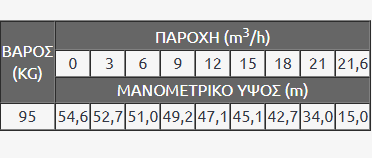 - ΠΑΡΟΧΗ Q K/Ω (m3/h) 3 ÷ 21,6