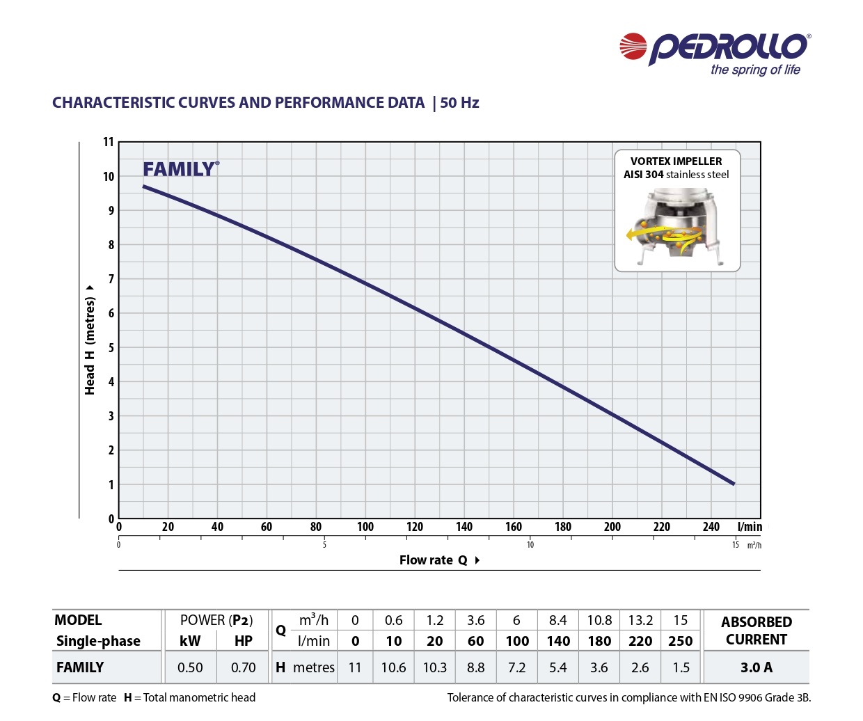 PEDROLLO Αντλία Υποβρύχια Λυμάτων PEDROLLO FAMILY - 0.7Hp/230V