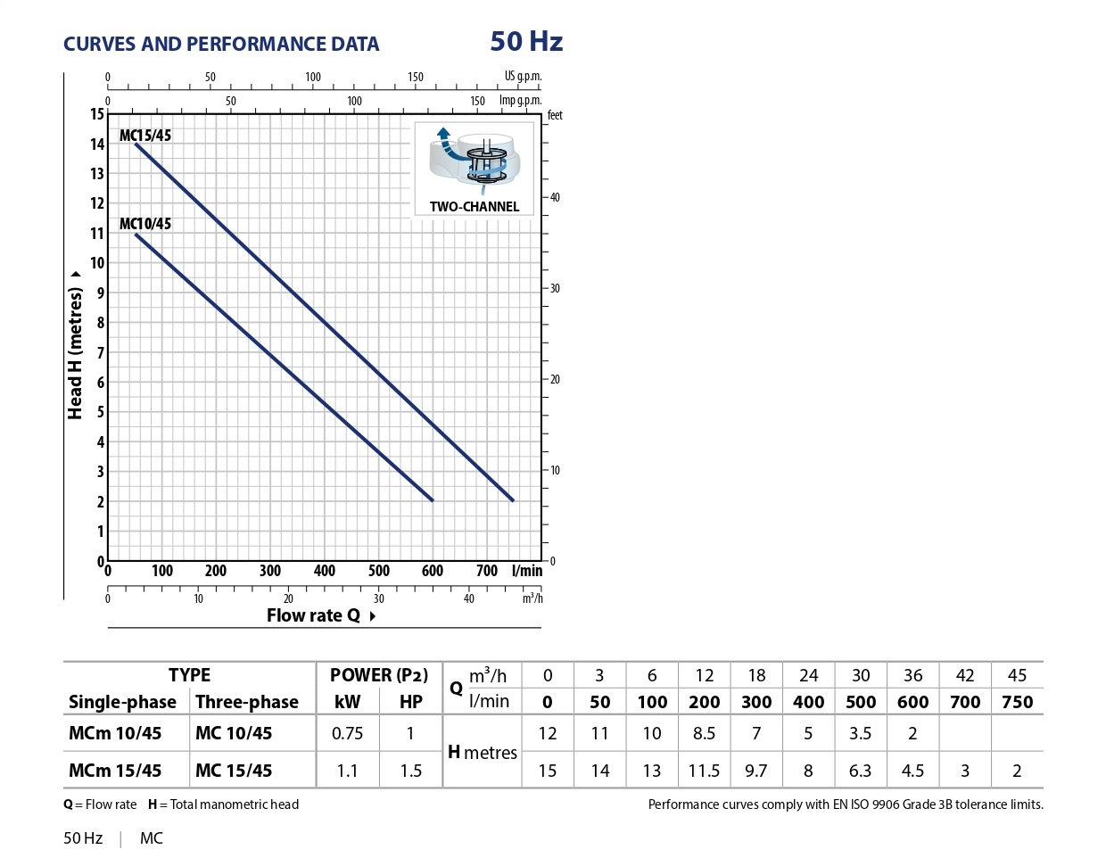 Η σειρά MC της PEDROLLO διαθέτει πτερωτές ΔΙΚΑΝΑΛΙΟΥ, προσφέροντας στιβαρή και αξιόπιστη απόδοση για απαιτητικές εφαρμογές. Κατασκευασμένες από χοντρό χυτοσίδηρο, αυτές οι αντλίες είναι εξαιρετικά ισχυρές και ανθεκτικές στην τριβή, εξασφαλίζοντας συνεχή λειτουργία. Είναι τέλεια για την αποστράγγιση βρώμικου νερού με αιωρούμενα στερεά και λυμάτων.