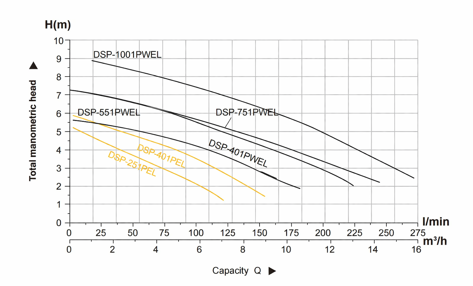 - Υψηλή παροχή 14 m³/h και μανομετρικό 7 m