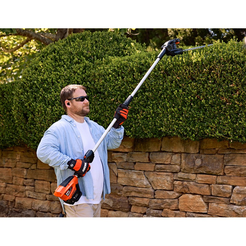 Το DHCA-310 είναι ένα ψαλίδι μπορντούρας μπαταρίας με μακρύ κοντάρι το οποίο έχει σχεδιαστεί ώστε να κάνει το κόψιμο οποιουδήποτε φράχτη απλό και ακριβές. Με συνολικό μήκος 246cm και λεπίδες που ρυθμίζονται σε διαφορετικές θέσεις μπορείτε να αντιμετωπίσετε ψηλούς και μεγάλους φράχτες εύκολα και με ελάχιστη προσπάθεια. Είναι ικανό να καθαρίσει αποτελεσματικά χοντρούς θάμνους καθώς και να συμβάλει εξαιρετικά στην σχηματική διαμόρφωση των φραχτών σας. (Η αναγραφόμενη τιμή συμπεριλαμβάνει μπαταρία 4Ah και φορτιστή)