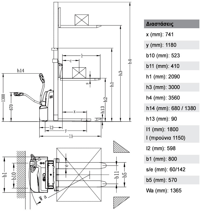 - με 4 Ρόδες PU και Συνολικό Ύψος Περονοφόρου 3560mm