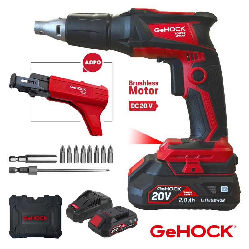 Κατσαβίδι Γυψοσανίδας Αυτοτροφοδοτούμενο Μπαταρίας 20V Li-Ion GeHOCK