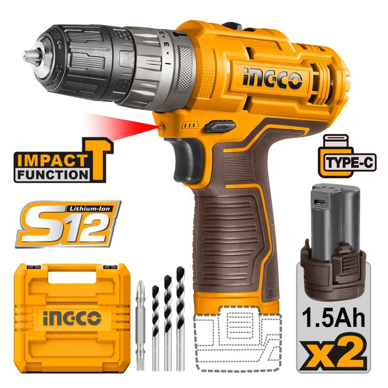 - Περιεχόμενα συσκευασίας: Δεν περιέχεται ο αντάπτορας και το Καλώδιο φόρτισης USB Type-C 2 τεμ. Μπαταρία 12V 1.5Ah Li-Ion USB Type-C (FBLI12153) 1 τεμ. Διπλή μύτη 65mm Cr-V 3 τεμ. Τρυπάνια Πλαστική βαλίτσα