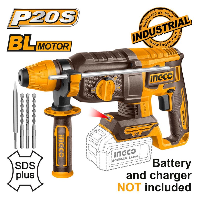 - Λεπτομέρειες προϊόντος: Κρουστική ισχύς 2.5J, Τσοκ SDS plus, Μέγεθος τρυπανιού έως Φ 26mm. Brushless Motor (μοτέρ χωρίς καρβουνάκια) 4 Λειτουργίες: • Διάτρηση με κρούση (σκυρόδεμα ή πέτρα) • Διάτρηση χωρίς κρούση σε ξύλο, μέταλλο, κεραμικά και πλαστικά • Ελεύτερη περιστροφή για ρύθμιση θέσης καλεμίσματος • Σκαπτικό Δυνατότητες τρυπήματος: Μπετόν 26mm, Ατσάλι 13mm, Ξύλο 30mm
