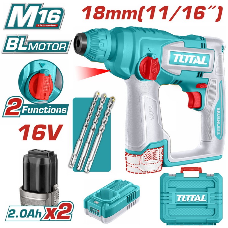 TOTAL ΕΠΑΓΓ. ΠΝΕΥΜΑΤΙΚΟ ΠΙΣΤΟΛΕΤΟ SDS-PLUS ΜΠΑΤ. Li-ion 16V / 2Ah / 2 ΜΠΑΤ (TRHLI16168)